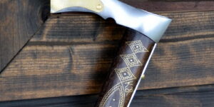 táto vybíjaná valaška je len mierne vybitá, menšia čepeľ, ľahšia, ale poslúži rovnako dobre k vychádzka po našom okolí.